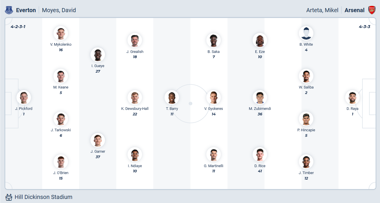 Arsenal đang là đội bóng được đánh giá rất cao tại châu Âu vào lúc này, họ toàn thắng tại Champions League và cũng đang đứng đầu tại Premier League. Tuy nhiên hiện tại đội bóng của HLV Mikel Arteta chỉ còn hơn đội đứng thứ 2 là Manchester City 2 điểm, khoảng cách rất mong manh và có thể để mất bất cứ lúc nào nếu không thể giành kết quả tốt. Chính vì vậy khi đến làm khách trên sân của Everton thì 3 điểm là điều duy nhất mà Arsenal hướng đến, đây là trận đấu không dễ dàng nhưng rất có thể Arsenal sẽ biết cách tận dụng các cơ hội của mình để có 3 điểm trọn vẹn.