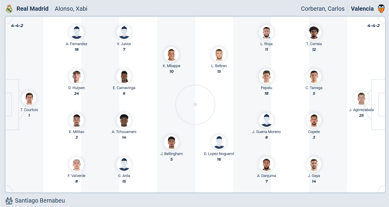 Real Madrid đang đứng đầu bảng một cách vững vàng sau chiến thắng trước kình địch Barcelona, mùa giải vẫn còn rất dài nên đội bóng của HLV Xabi Alonso vẫn cần duy trì mạch chiến thắng của mình. Chính vì vậy khi đón tiếp Valencia ở vòng 11, 3 điểm vẫn là điều các cầu thủ Real Madrid hướng đến để có nhiều cơ hội chinh phục ngôi vương. Trước đối thủ yếu hơn nhiều và đang chơi rất tệ thì Real Madrid được dự đoán không mất nhiều công sức để đạt được mục đích.
